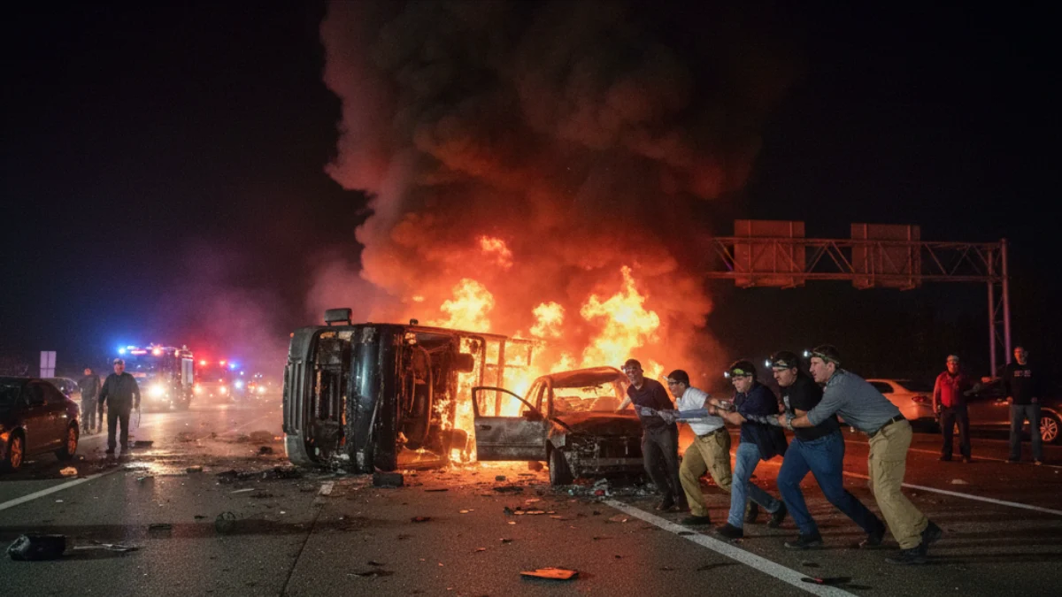 Shivpuri Highway Accident: ट्रक पलटा-लगी आग, कार भी घुसी – 4 युवकों की बहादुरी से कैसे बची जानें?
